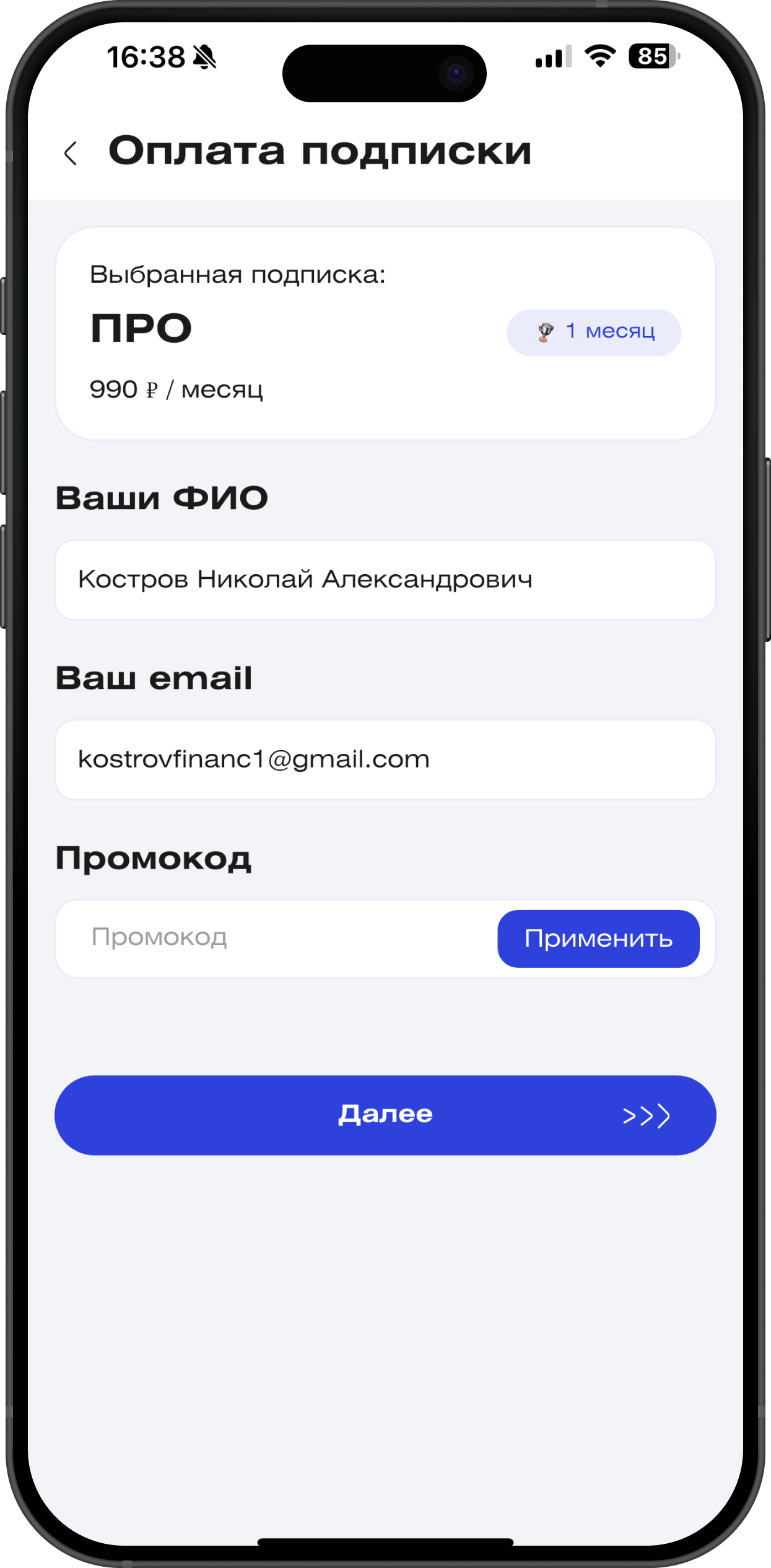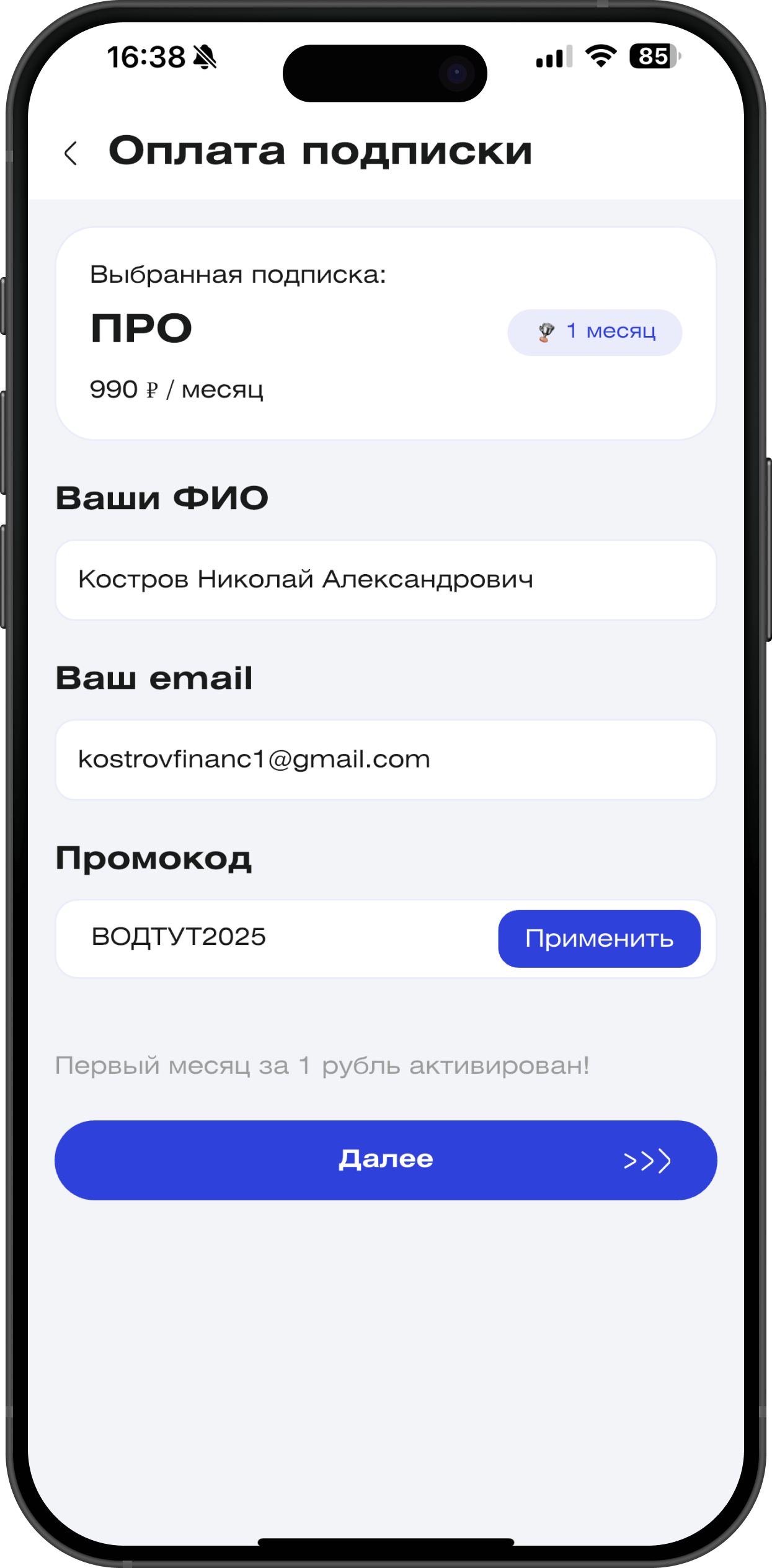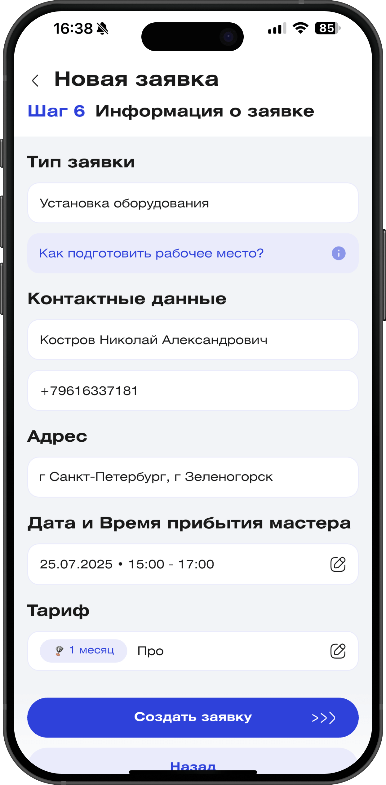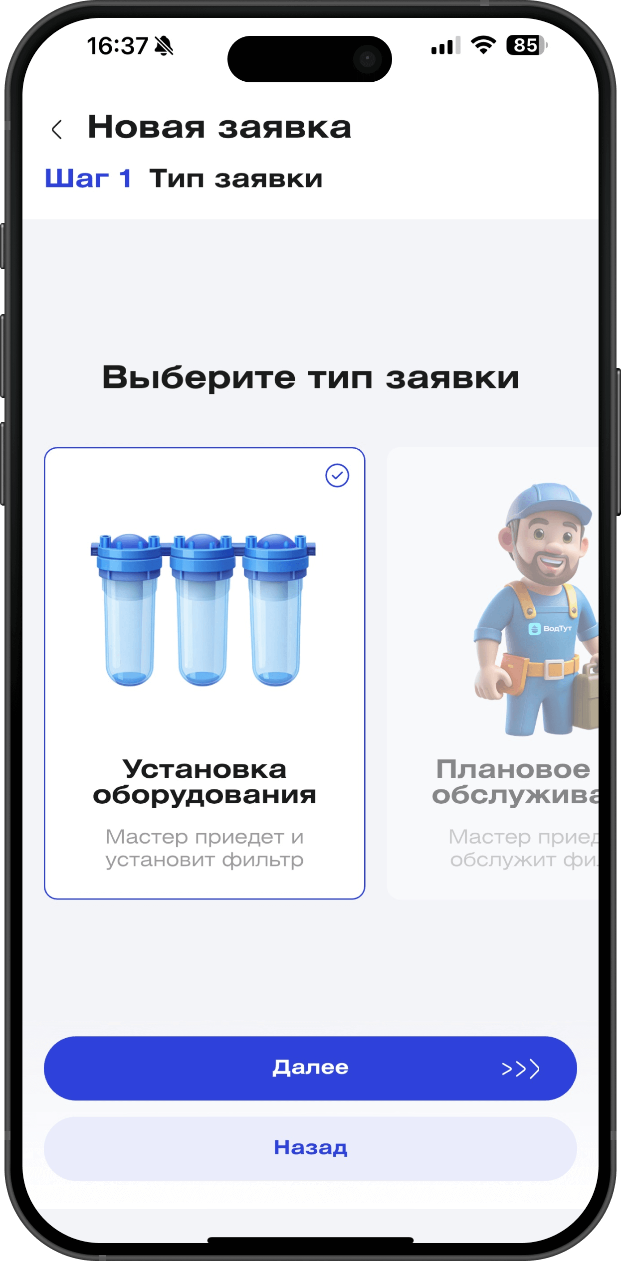 Важно: клиент должен иметь полный контроль в мобильном приложении — видеть свой тариф, статус фильтра, даты списаний и документы.